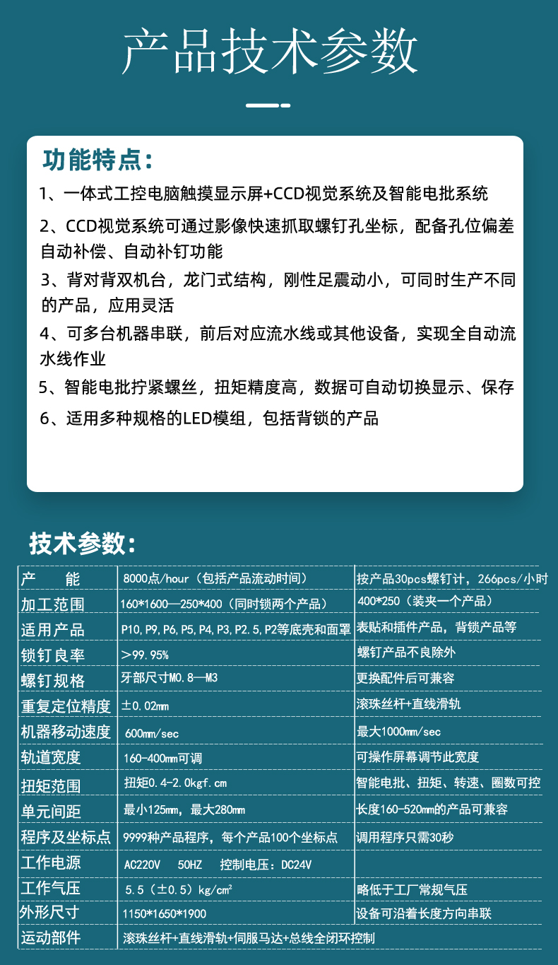 1、可配合自動流水線通過坐標(biāo)或機(jī)械手自動定位,自動鎖付2、可實現(xiàn)多機(jī)臺聯(lián)機(jī)組合工作,實現(xiàn)無人自動化生產(chǎn)